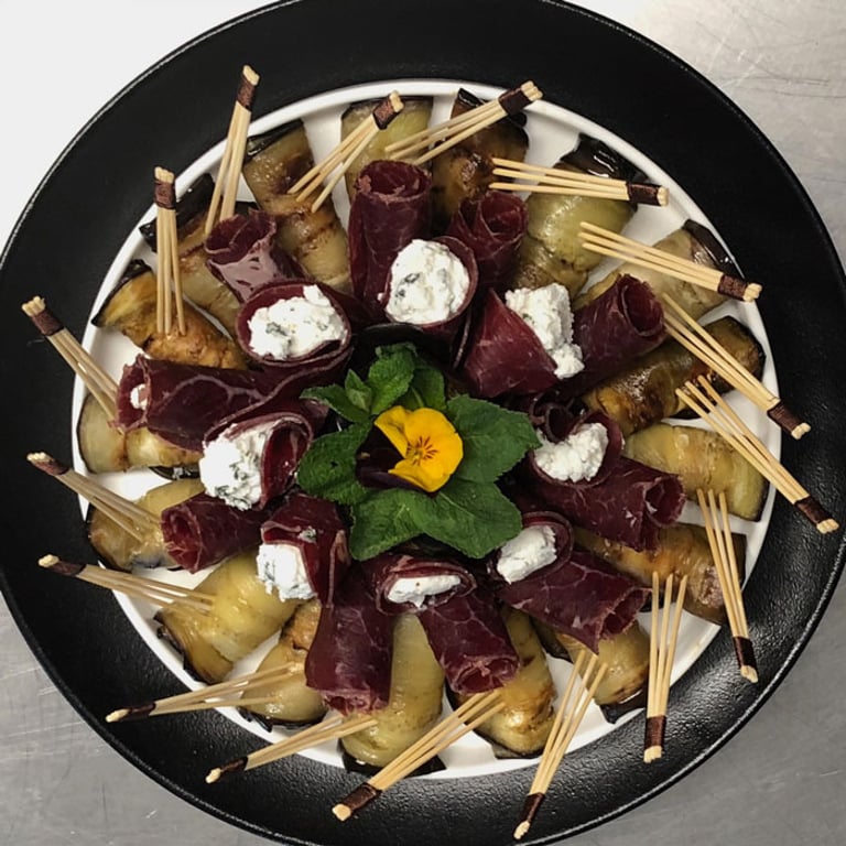 Tartare de concombre, charlotte, citron confit et gingembre, gambas vapeur au paprika fumé. Dos de bar à la plancha, caponata aux olives, jus de viande corsé.